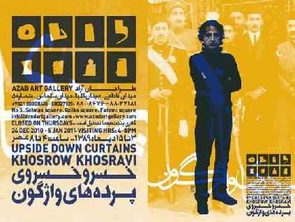 «پردههای واژگون» عنوان تازهترین مجموعه نقاشیهای خسرو خسروی در گالری «طراحان آزاد» است. او با استفاده از لایههای اجتماعی و فرهنگی توانسته است متنهایی نامتقارن، متناقض و متکثر از یک بینامتن کلی به وجود آورد. متنهای فرهنگ پیشین و متنهای فرهنگ پیرامون با بافتی متفاوت سبب حصول گفتمانی متحول، شده است. در هر اثر،متنها به صورت شکلهای کمابیش قابل شناسایی در لایههای پیشین و پیرامون قرار گرفتهاند. لایه پیشین فرهنگ و شرایط اجتماعی سالهای نچندان دور ایران و لایههای پیشرو شرایط کنونی را به تصویر کشیده است.