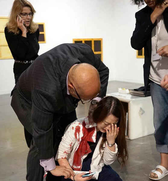 نکته قابل توجه این است که گروهی از حاضرین در محل حادثه گمان کرده اند پرفورمانسی در حال وقوع است و گروهی دیگر بعد از اینکه پلیس محل حادثه را با کشیدن نوارهای مخصوص، مسدود می‌کند، آن‌‎چه می بینند را بخشی از یک اینستالیشن تلقی می‌کنند. دامنه گسترده اجرای پروفومس‌هایی همچون اجراهای مارینا آبراموویچ  و دیگران، به نوعی باعث شده بازدیدکنندگان به دیدن خون و یا شنیدن صدای فریاد، در یک محیط رسمی برگزاری هنر معاصر به دیده شک بنگرند که آیا باز هم توسط یک اثر عجیب معاصر غافلگیر شده اند یا خیر. آنچه در حاشیه این اتفاق می‌تواند تامل بر انگیز باشد این‌است که یک اتفاق فارغ از ماهیت خود به فراخور بستری که در آن اتفاق افتاده است معنای متفاوتی در ذهن مخاطب ایجاد می کند، همچون اثر هنری معاصر که امروز در بستر و زمینه ارائه خود معنا می‌یابد. هنرمندانی پرفورمنسی کهبه جهت جلب توجه مخاطب در محل گالری حوادثی را هرچند واقعی و به قیمت آسیب دیدن خود طراحی و اجرا کرده اند به نوعی، شیوه واکنش مخاطب را به محل وقوع اتفاق منوط کرده اند.