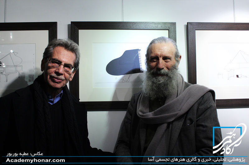 بنگاه شادمانی از چشمه بیپایان ایدهها و سوژههایم میباشد که بخش کوچکی از آن را دراین نمایشگاه میبینید. دهها طرح دیگر درباره موسیقی دارم،اگر عمری باقی باشد ادامه میدهم. مرکب طرحهایی که در نمایشگاه مشاهده میکنید، هنوز خشک نشده است،همه آنها را یک ماه پیش تا به امروز کشیدهام!»