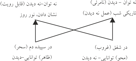 نور نه تنها موضوع حسي است، بلكه همانطور كه گفته شد عامل نشان دادن است. پس دو نقش اساسي دارد: نقش نحوي در روايت و موضوع ادراك. تابش نور هم تحريك كندده ميشود و هم تسهيل كننده. گاهي قدرت ديد را بيشتر ميكند گاهي كمتر. به عبارتي آستانه حساسيت بيننده را تغيير ميدهد.